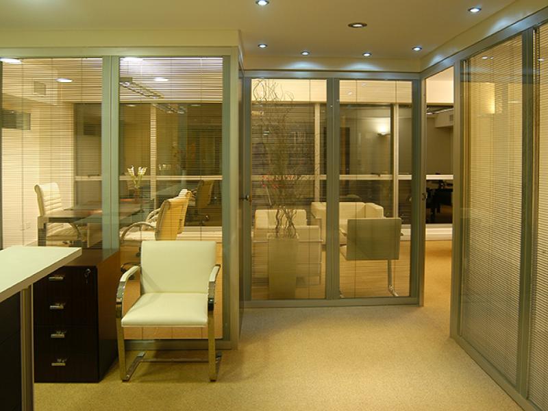 El conjunto armónico de materiales tales como el aluminio, el vidrio y la madera de wengue sumados a la paleta de color maíz elegida, le dan a la sede de Indexport una base cromática cálida, fresca y joven.
