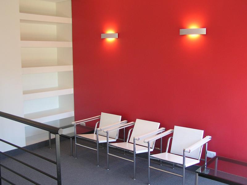 Una de las premisas básicas para la confección de este “layout” fue el manejo del color y la Iluminacion. Los materiales utilizados fueron aluminio, vidrio esmerilado y madera de wengue, los cuales, sumados a los muebles modernos y atemporales elegidos –sillones y mesas de Le Corbusier- le dan a este espacio la jerarquía y calidez que se merece.