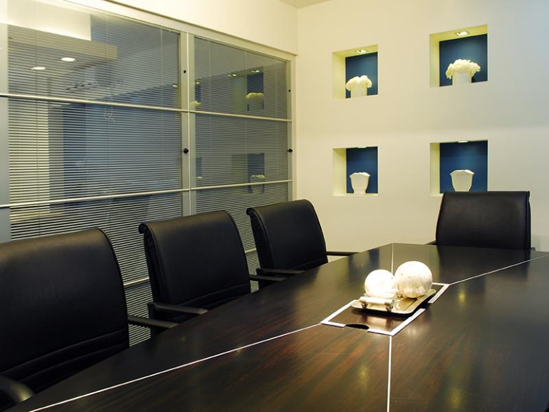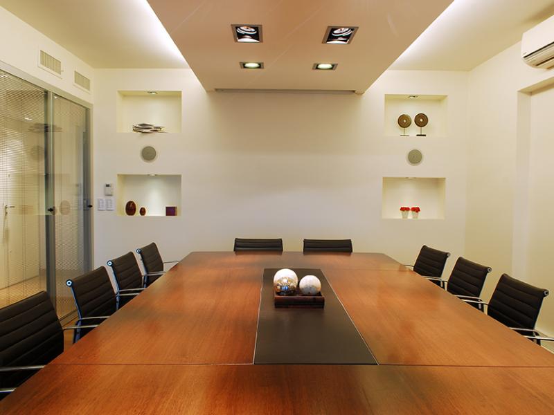 Las salas de reuniones; en ambas plantas; fueron puntos fundamentales; desarrollados en detalle: pantalla de proyecciones; audio; Iluminación, etc.
