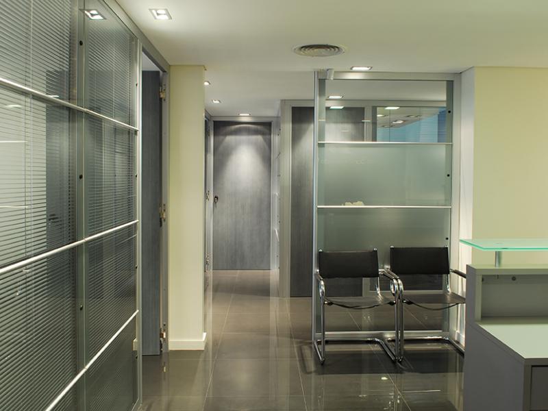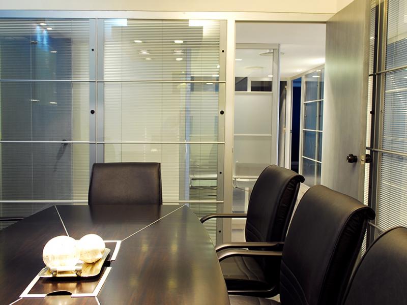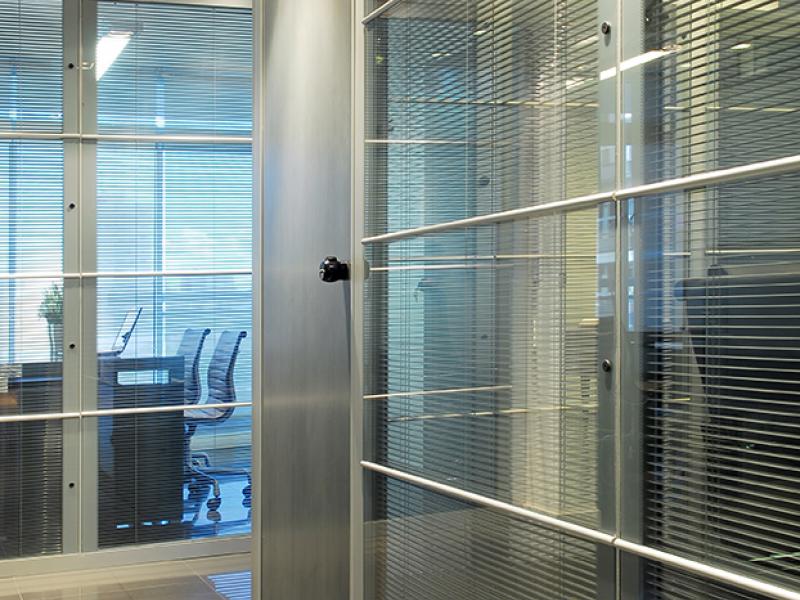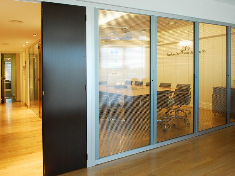 Los tabiques de doble vidriado en aluminio permiten filtrar la luz según las necesidades.
